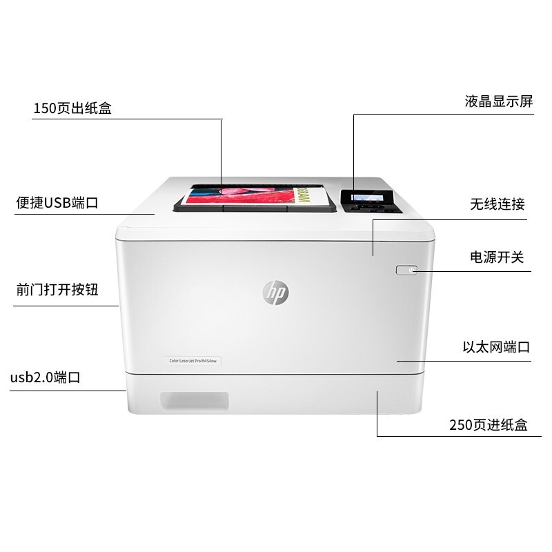 惠普(HP) 打印机 454nw A4彩色激光打印机家用办公 无线 单功能打印(不支持复印/扫描)