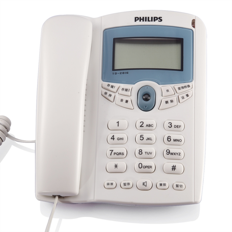 飞利浦(PHILIPS)电话机座机 固定电话 办公家用 免电池 来电显示 双插孔 TD-2816 白色