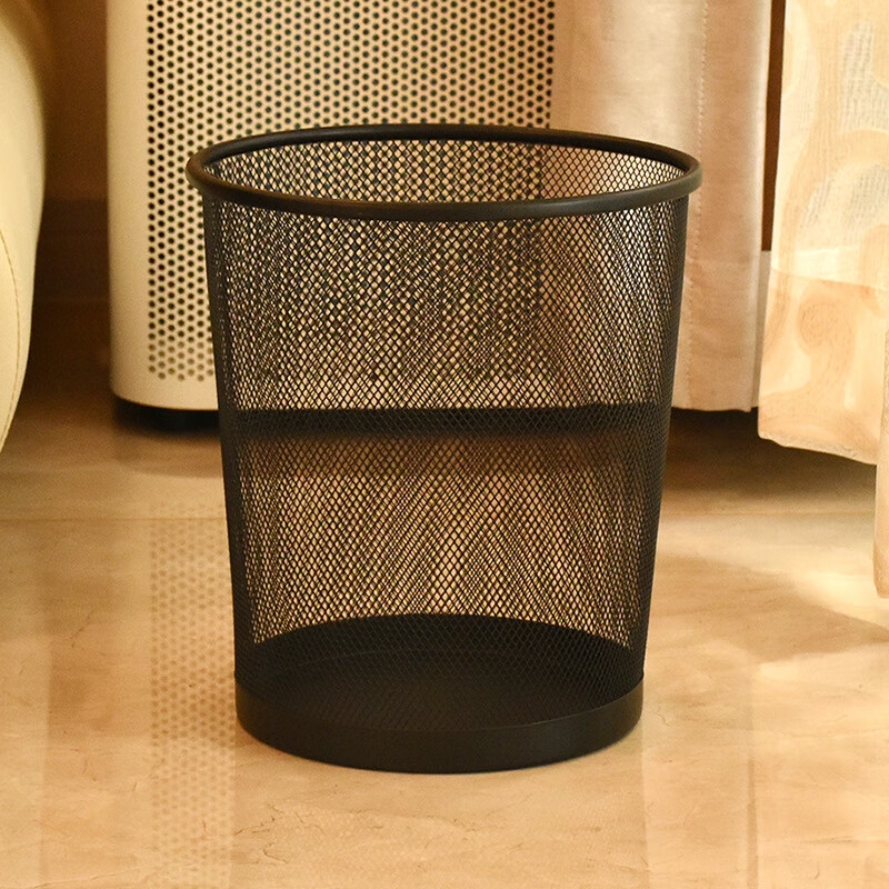 德仕通小号黑色铁网垃圾桶金属无盖垃圾篓简约垃圾桶家用办公废纸桶 圆形小号 高26cm*直径22cm 计价单位:个