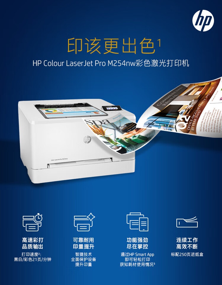 惠普 M254nw 彩色激光无线打印机 安全快速打印 支持有线 A4激光打印机