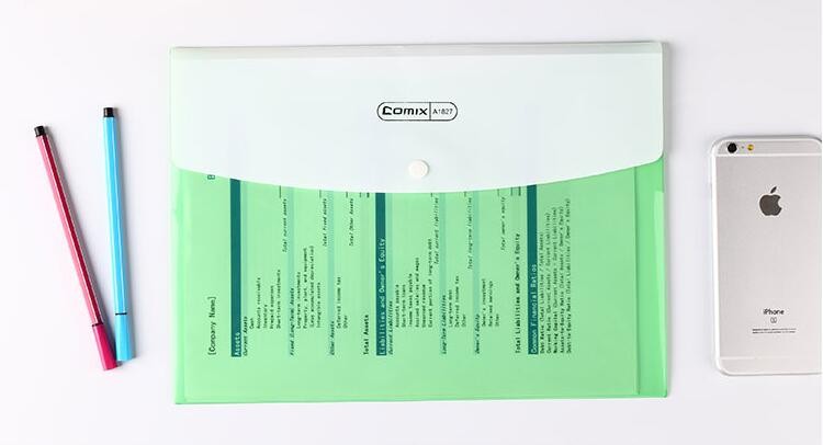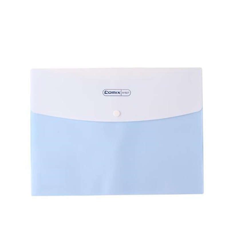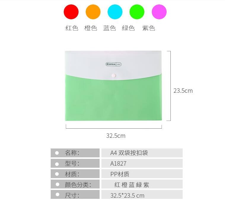齐心(COMIX) A4文件袋会议资料袋双袋按扣袋收纳袋绳扣袋 学生作业袋 水果色 A1827 横式 蓝色