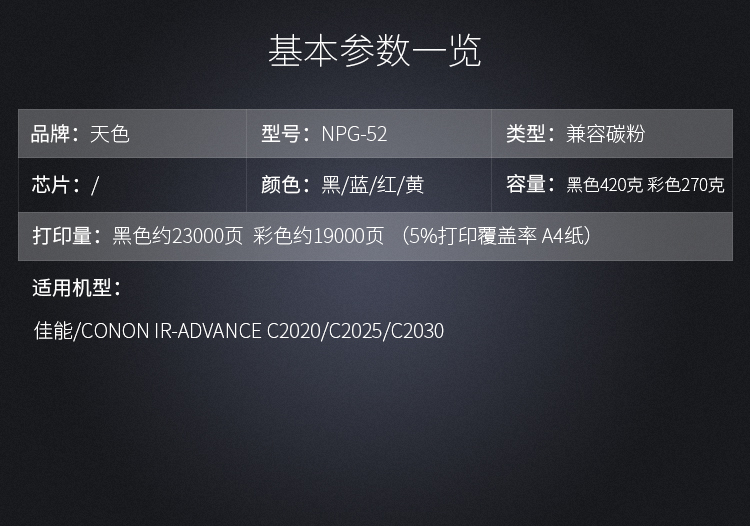 天色(19000页)NPG52 蓝色 大容量粉盒适用佳能IR-ADV c2220 c2025 c2030i c2220L墨粉碳粉盒 【19000页】NPG-52粉盒/蓝色