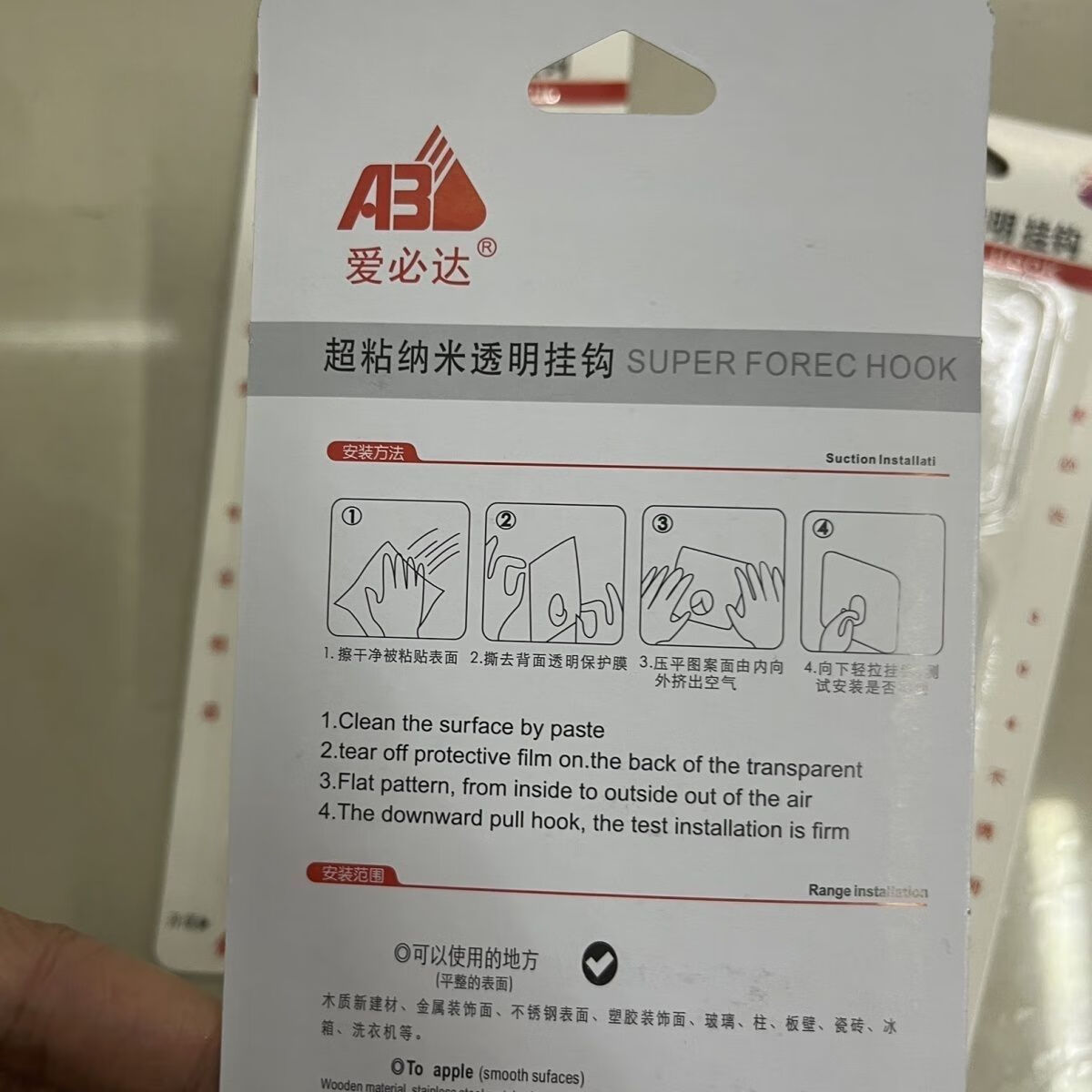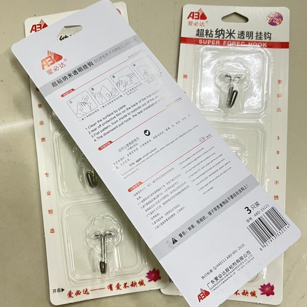爱必达ABD-33221超粘纳米透明无痕粘钩3个装(7kg)