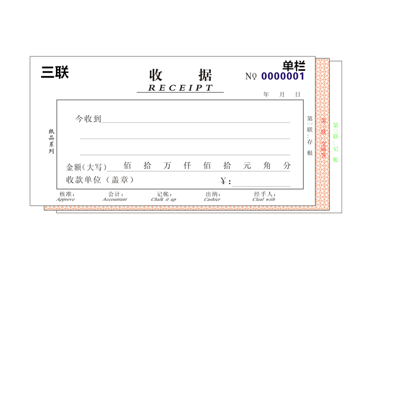 主力 收款收据 无碳复写收据自带垫板 0503 48K三联单栏 单本