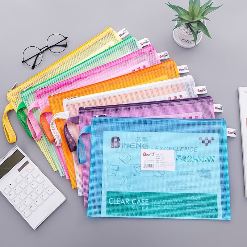 必能(BINENG)BN-899加厚A3防水网格拉链袋办公文件袋资料收纳袋学生文具袋 颜色随机