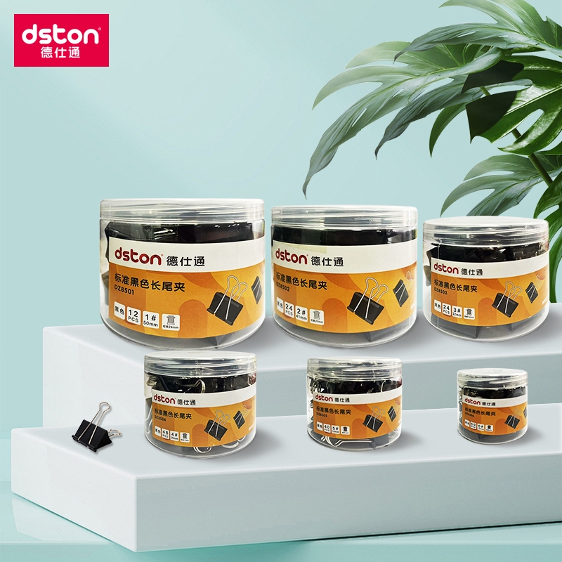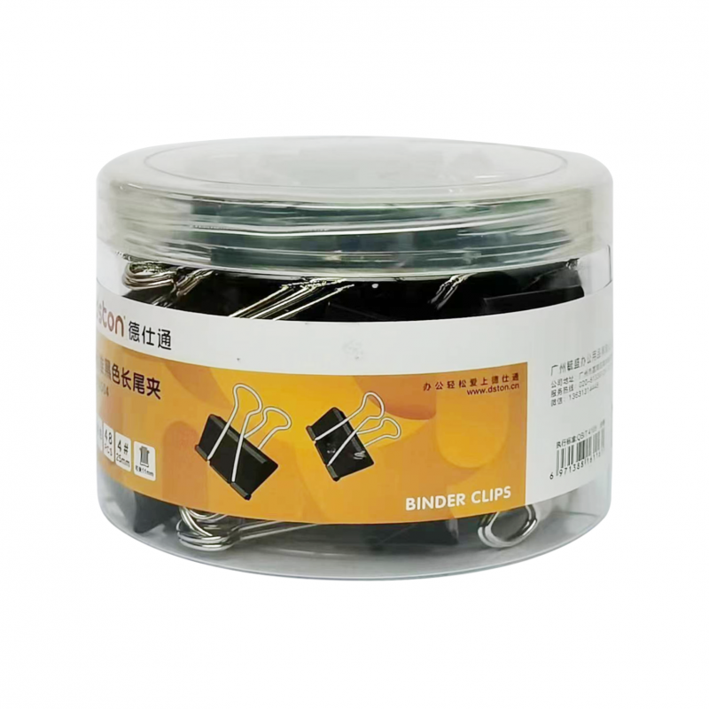 德仕通8506黑色筒装长尾夹15mm 60个/筒