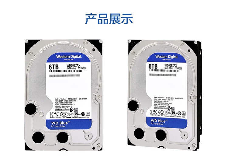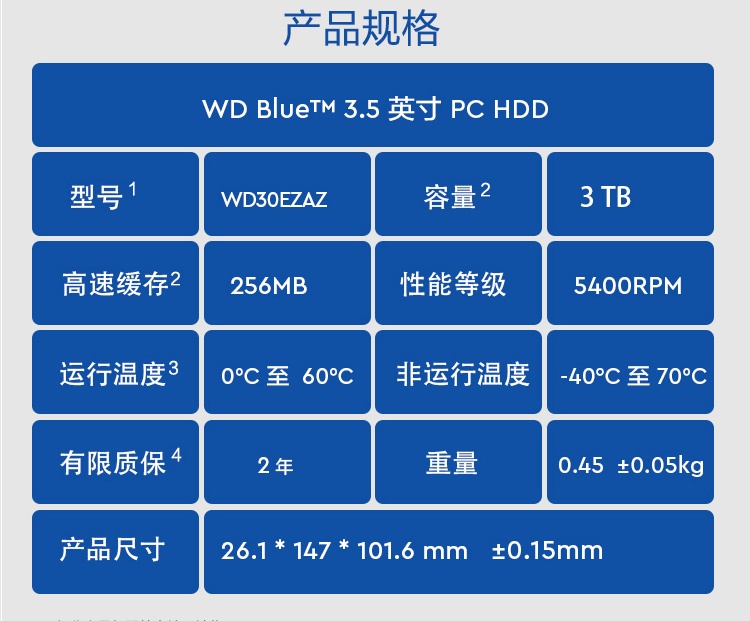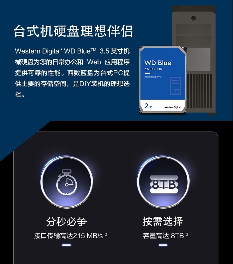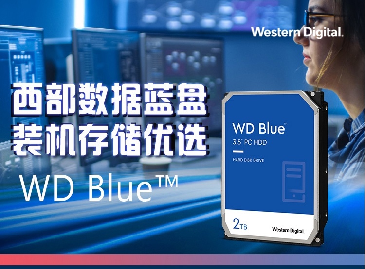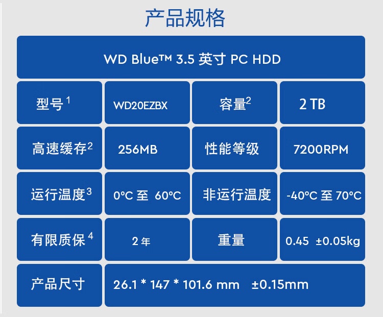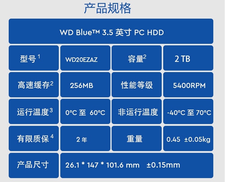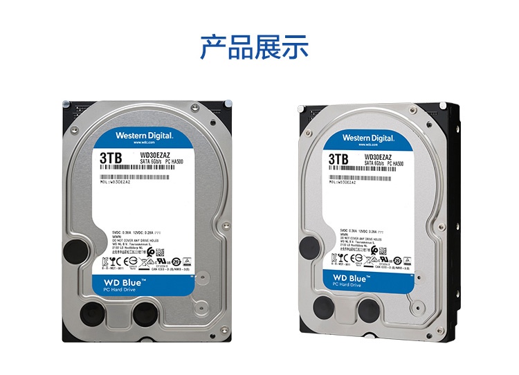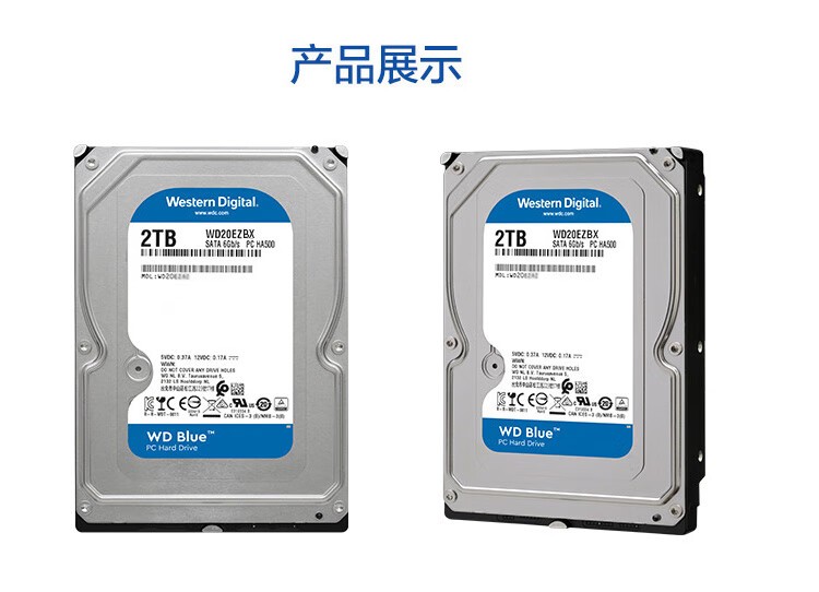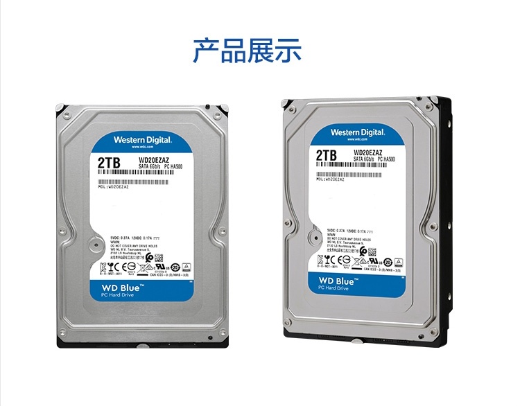西部台式机械硬盘3.5英寸 蓝盘2TB(WD20EARZ)垂直盘
