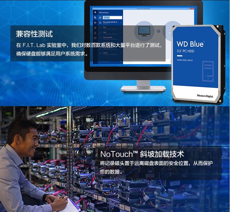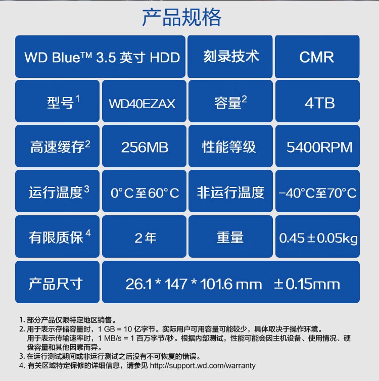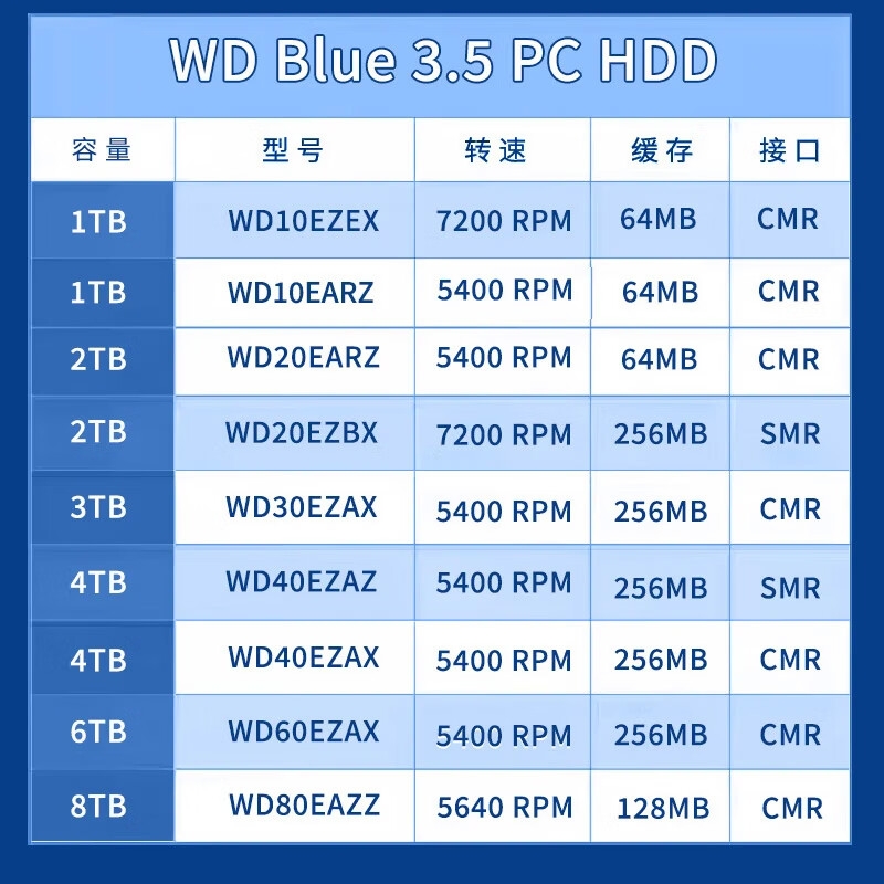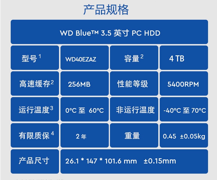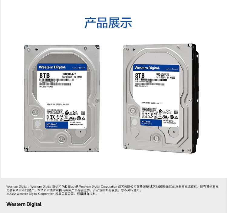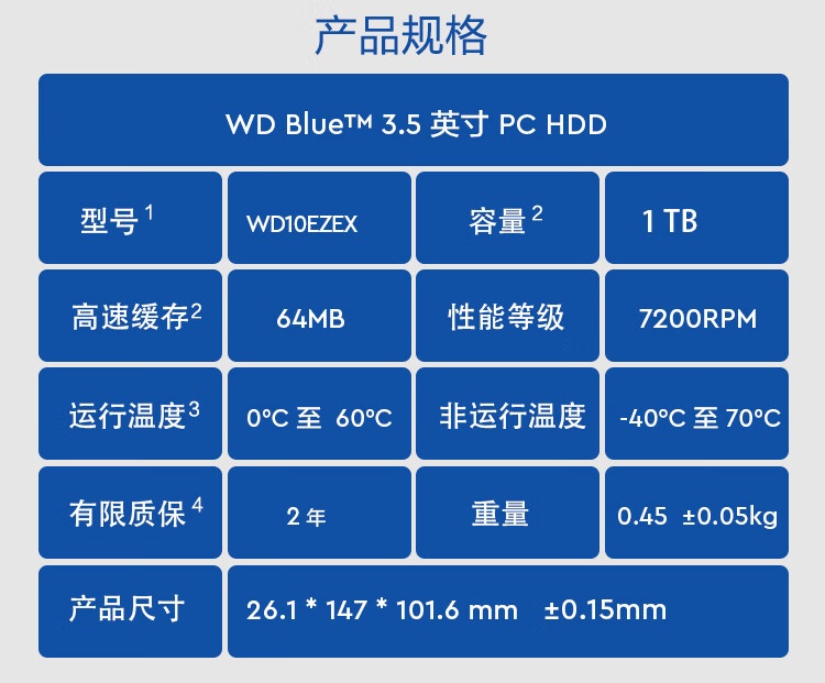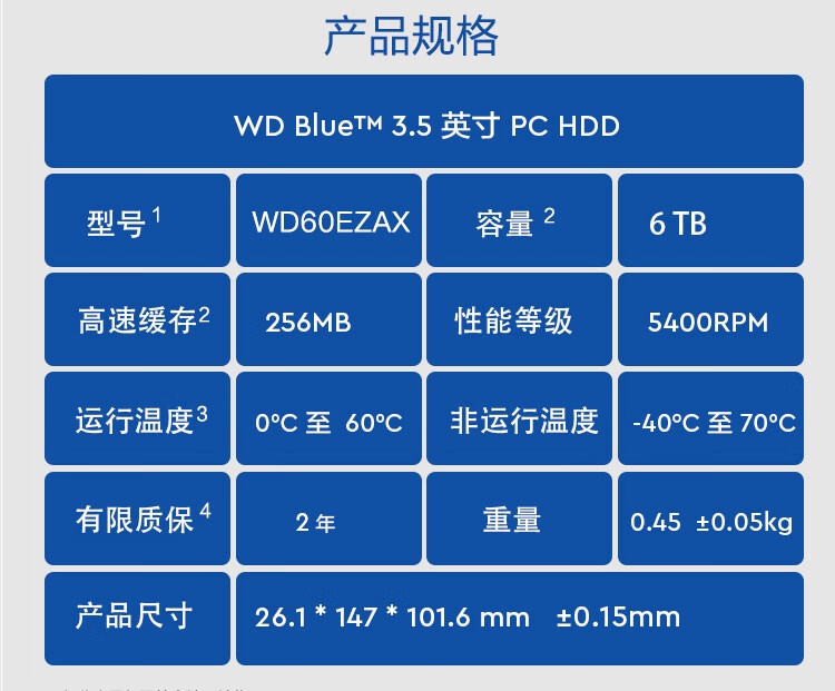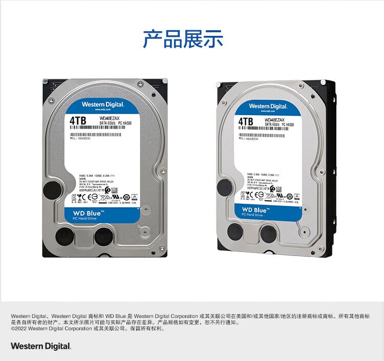 西部台式机械硬盘3.5英寸 蓝盘2TB(WD20EARZ)垂直盘