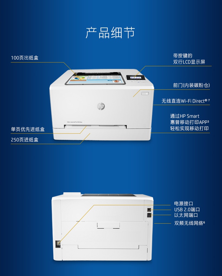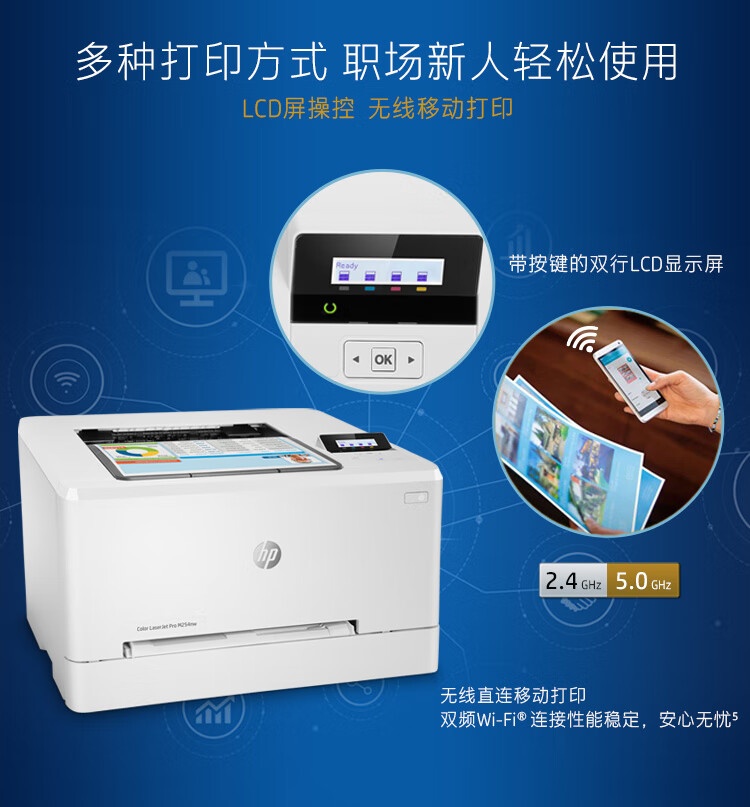 惠普 M254nw 彩色激光无线打印机 安全快速打印 支持有线 A4激光打印机