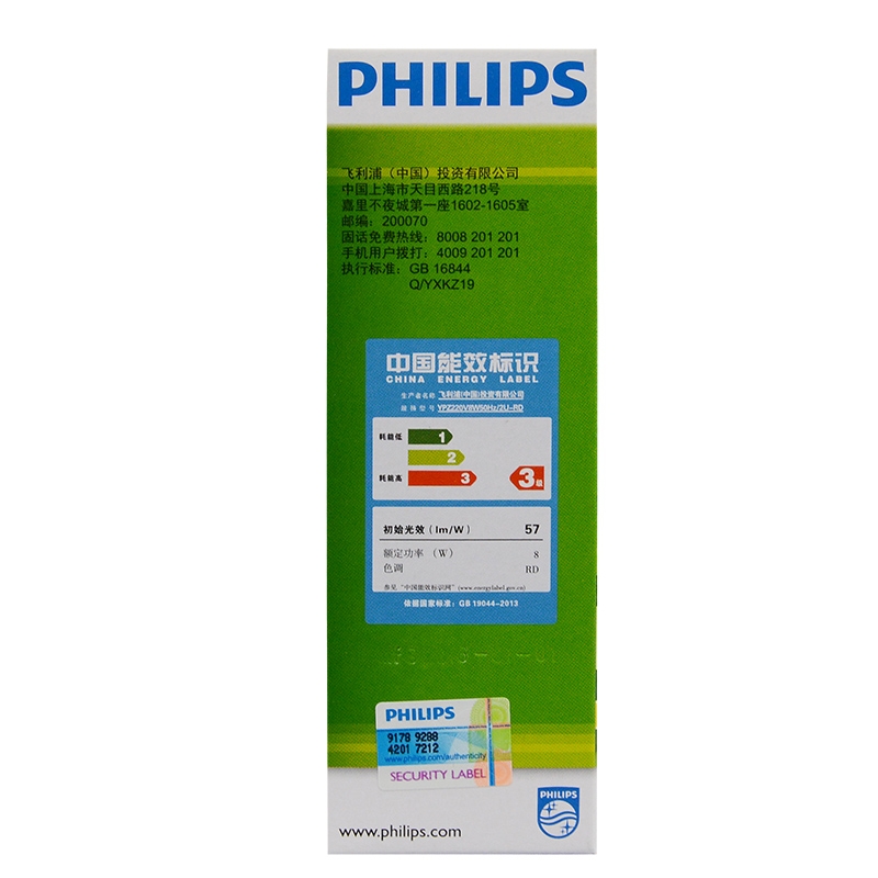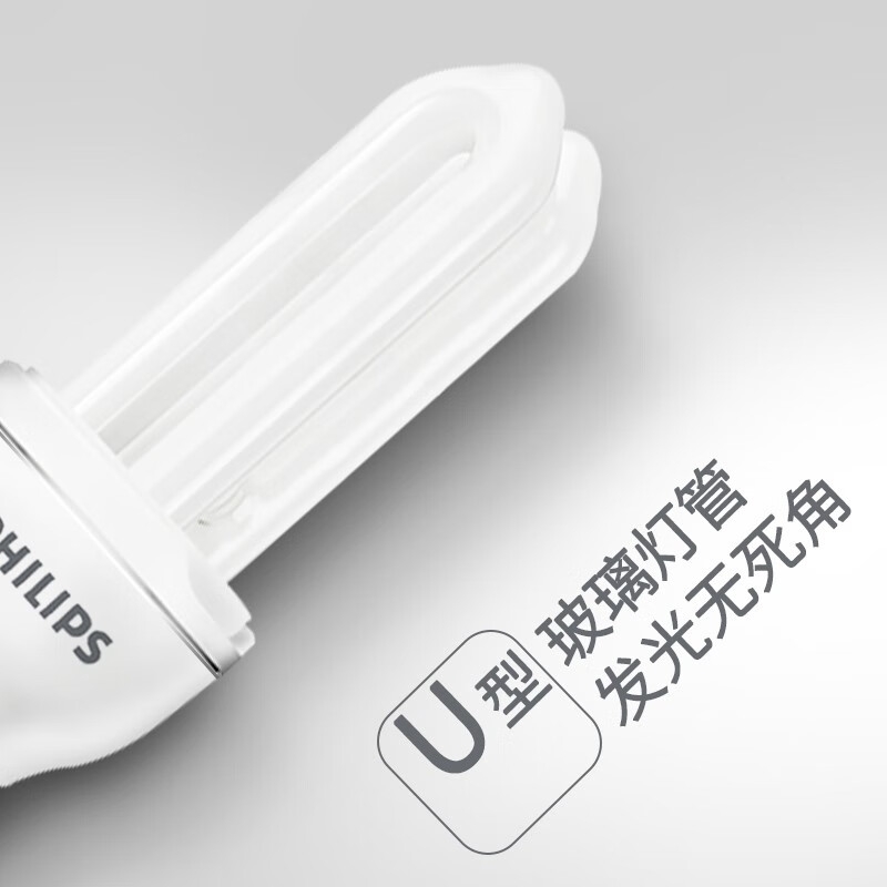 飞利浦(PHILIPS)2U三基色节能灯泡螺旋螺口led家用螺纹电灯U型 【E27-2U】-8W-6500K 白光