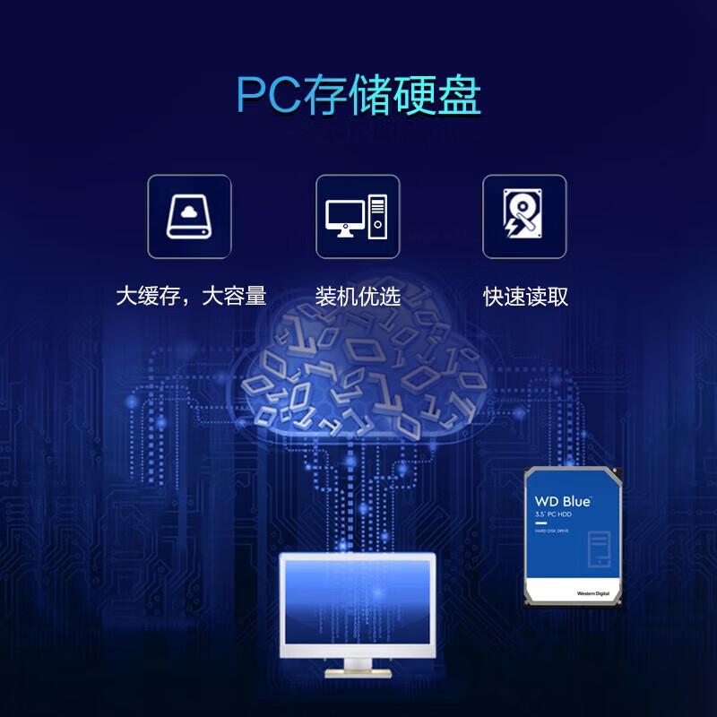 西部数据 台式机机械硬盘 蓝盘 2TB 7200转 256MB SATA (WD20EZBX)