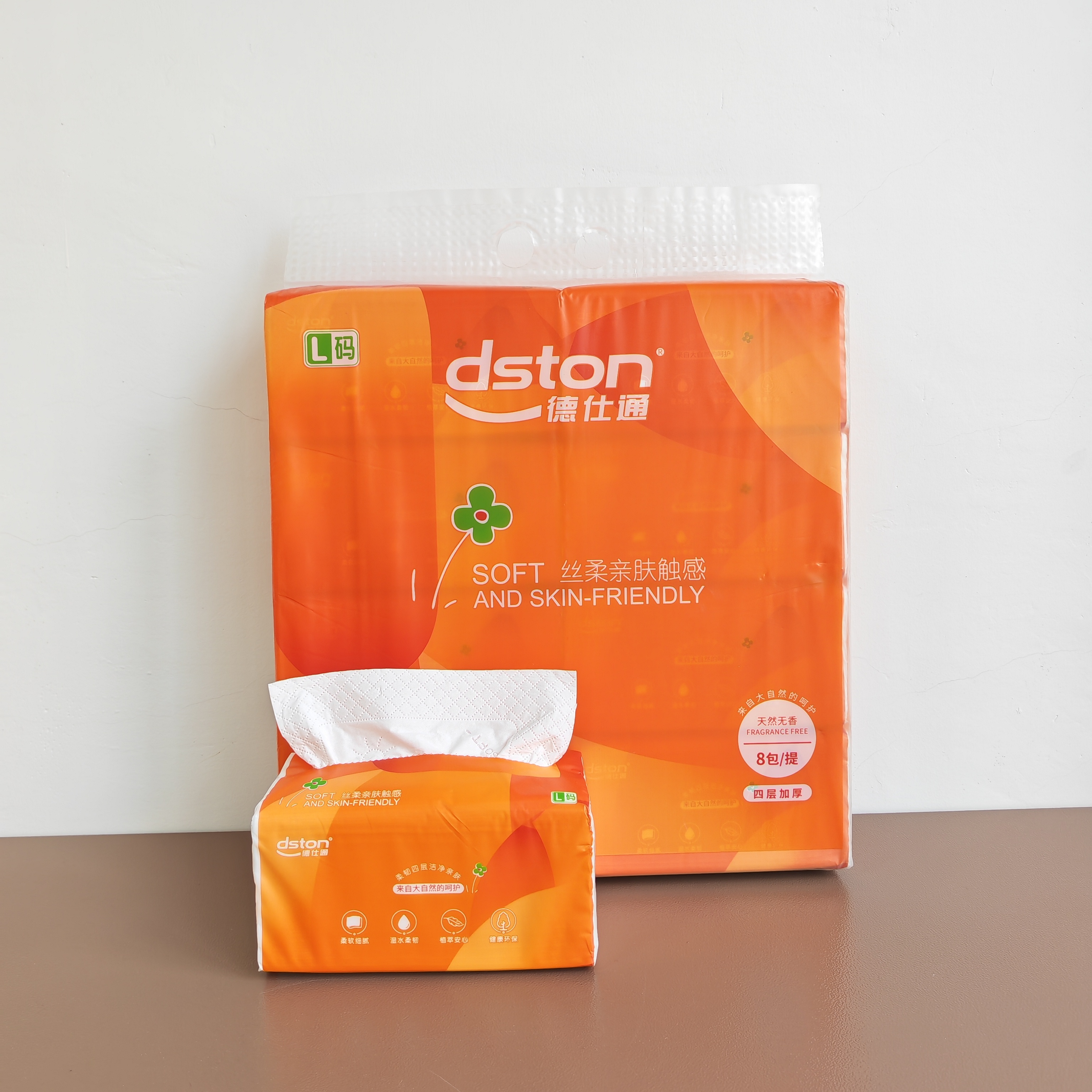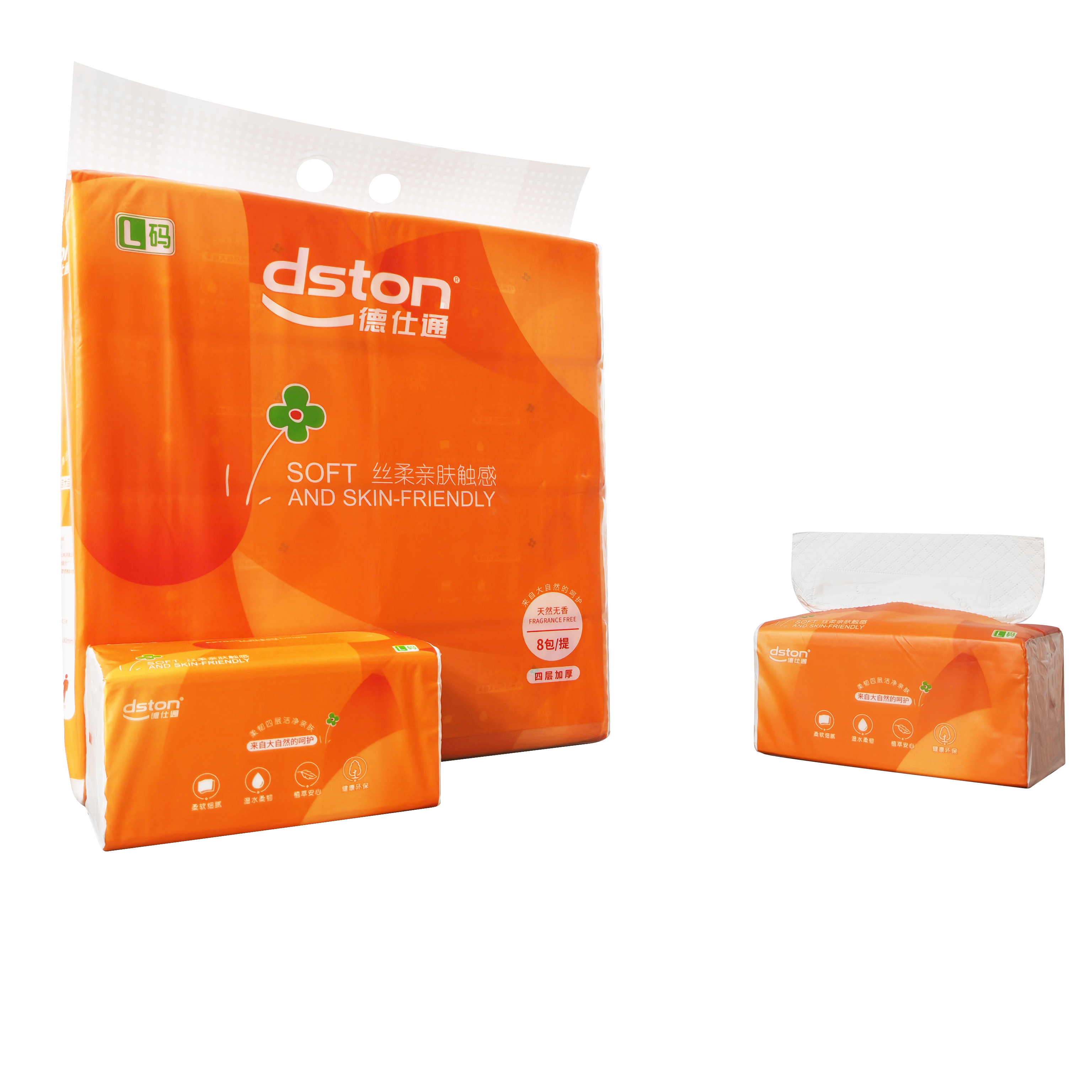 橙德仕通DS-2239 软包装面巾纸155*180mm 130抽*8包(L码)4层