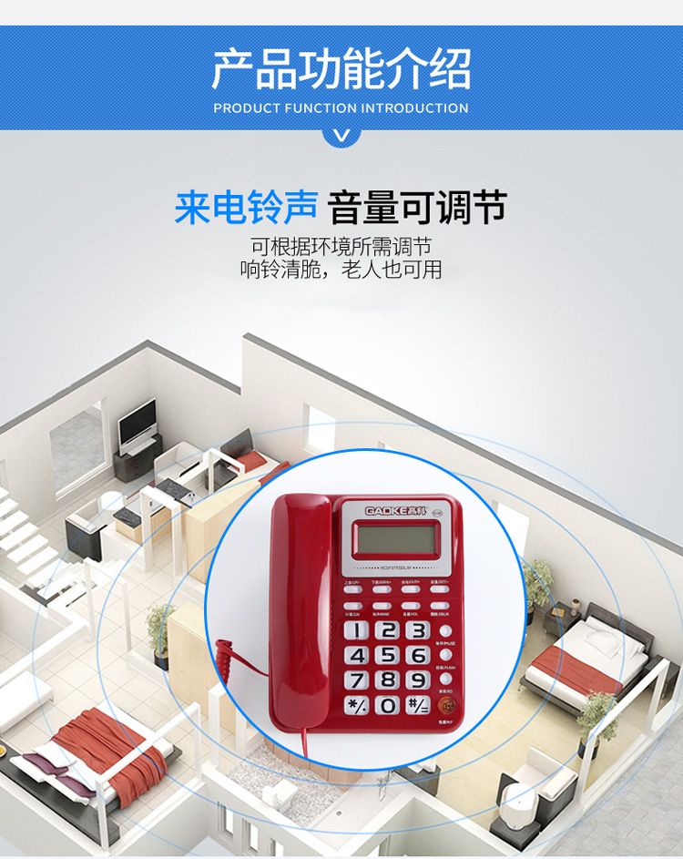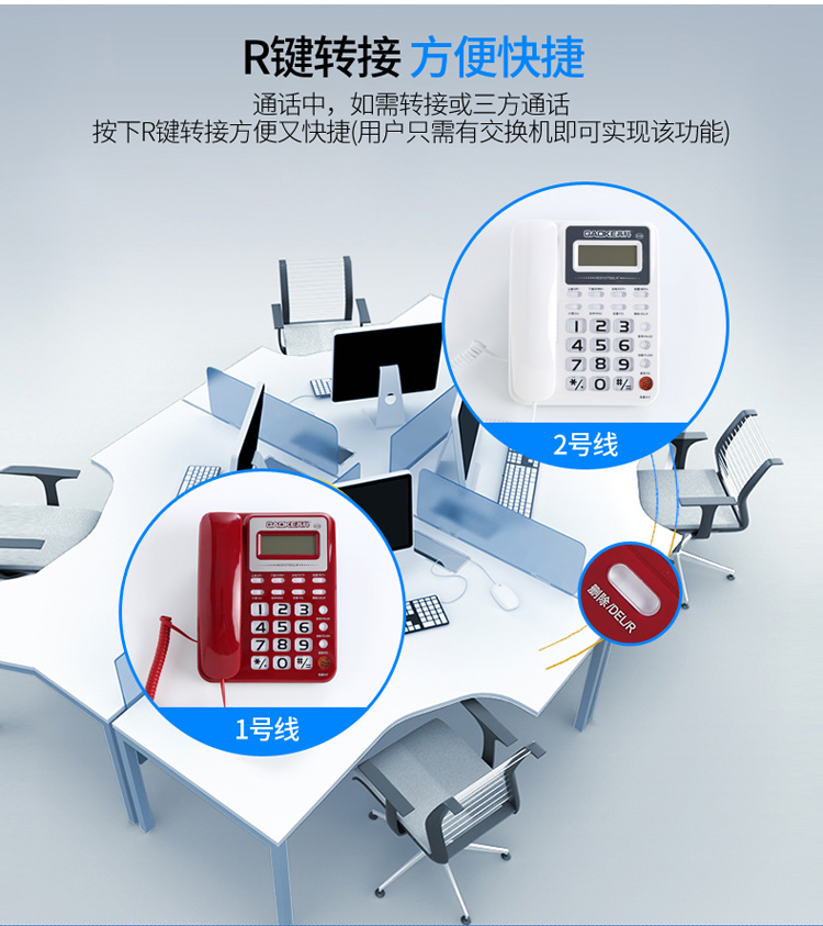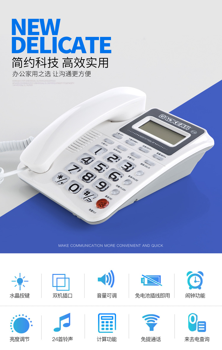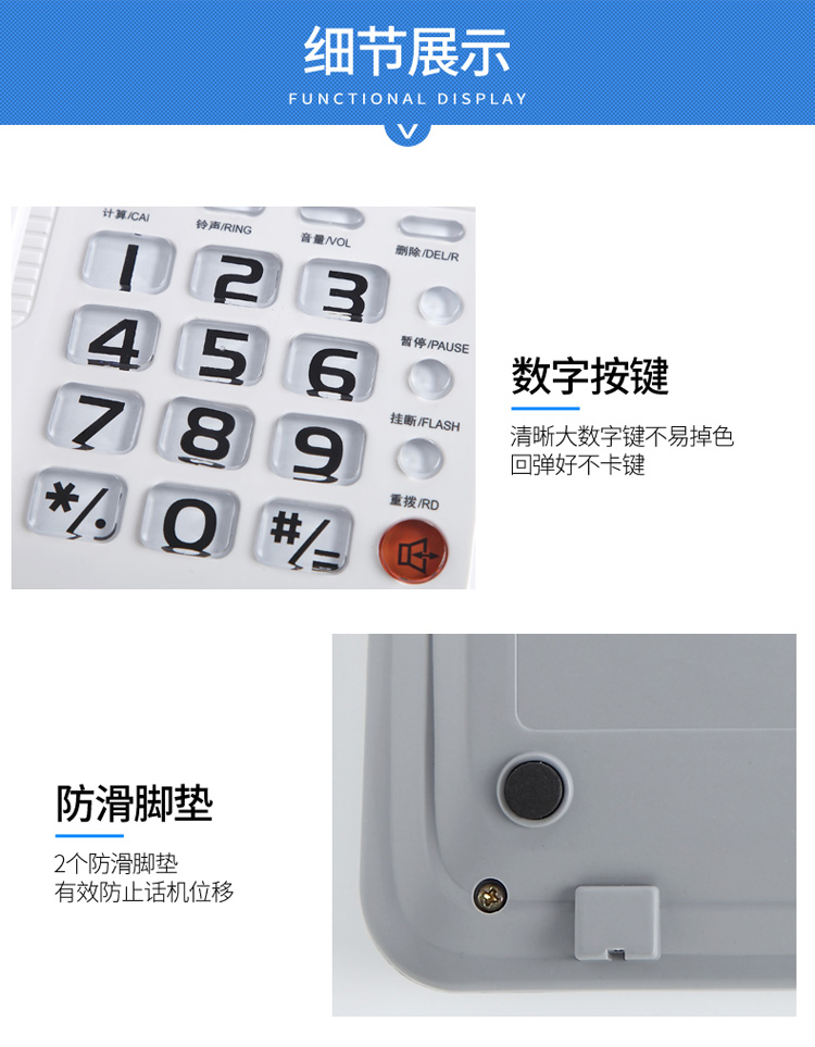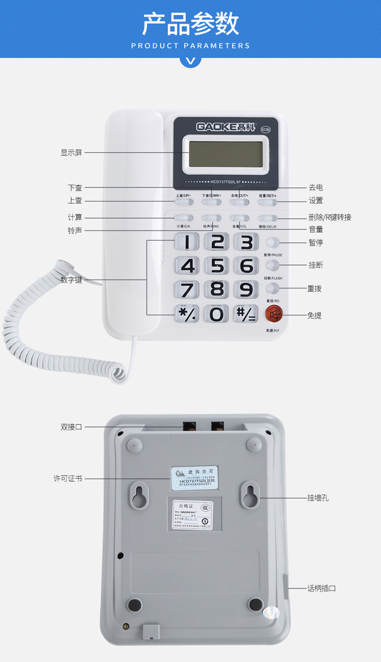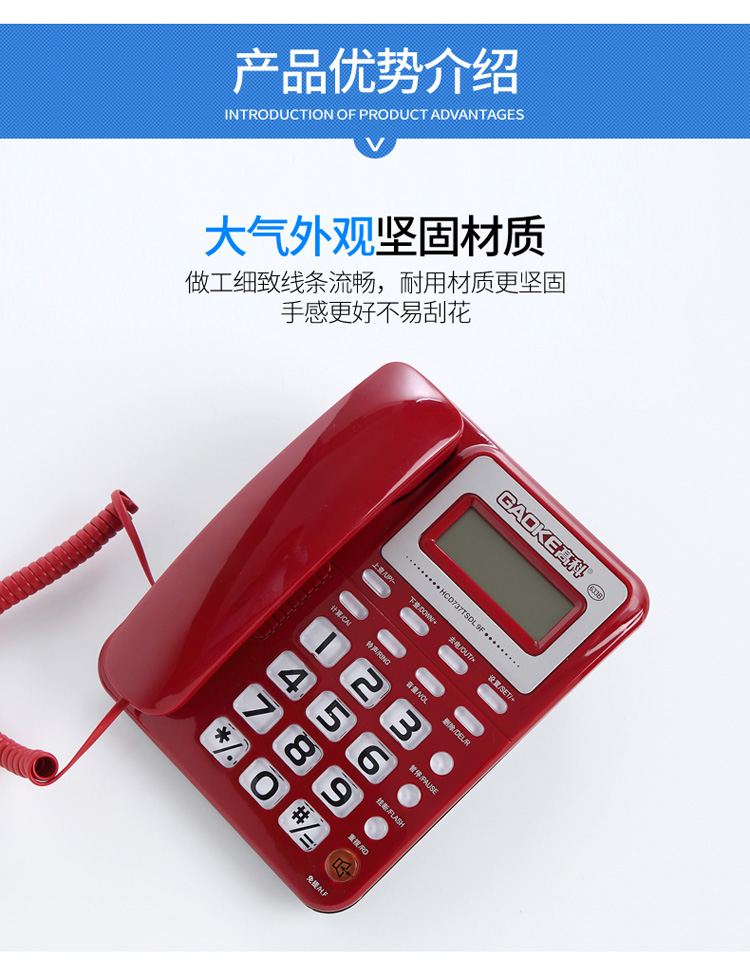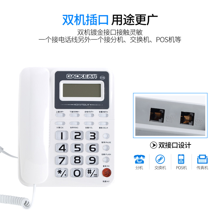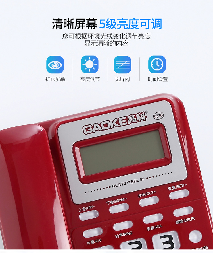 高科633B 电话机座机 有绳电话机 来电显示 办公家用固定电话机 大按键固定座机 灰白色