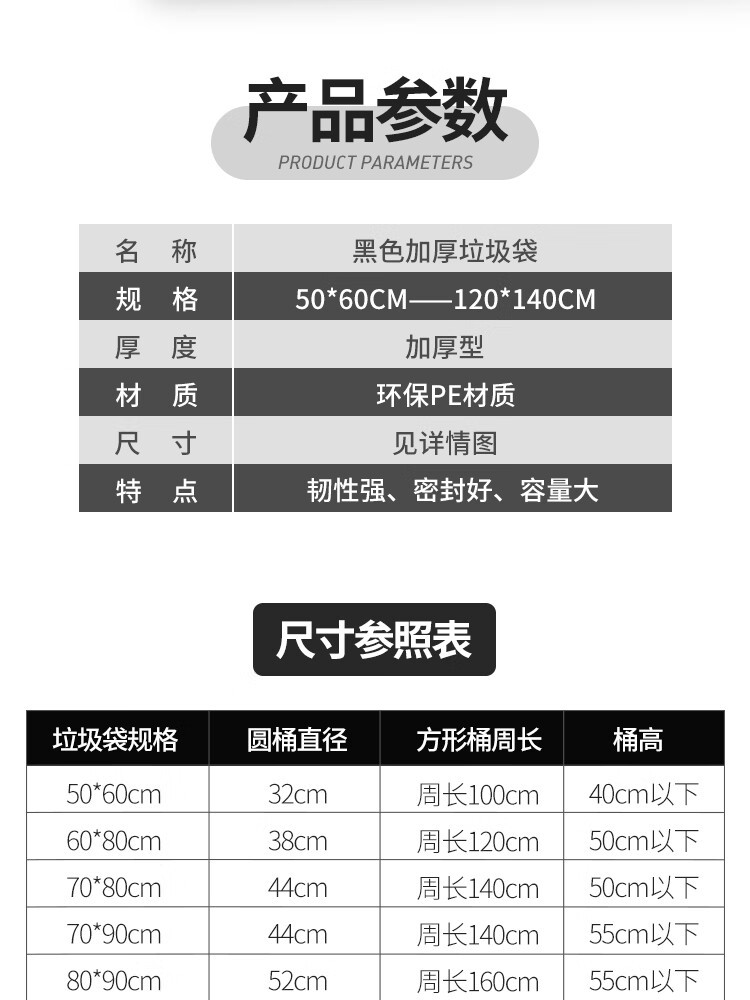 洁维嘉 JL1120黑色平口垃圾袋80*100cm 特厚新料