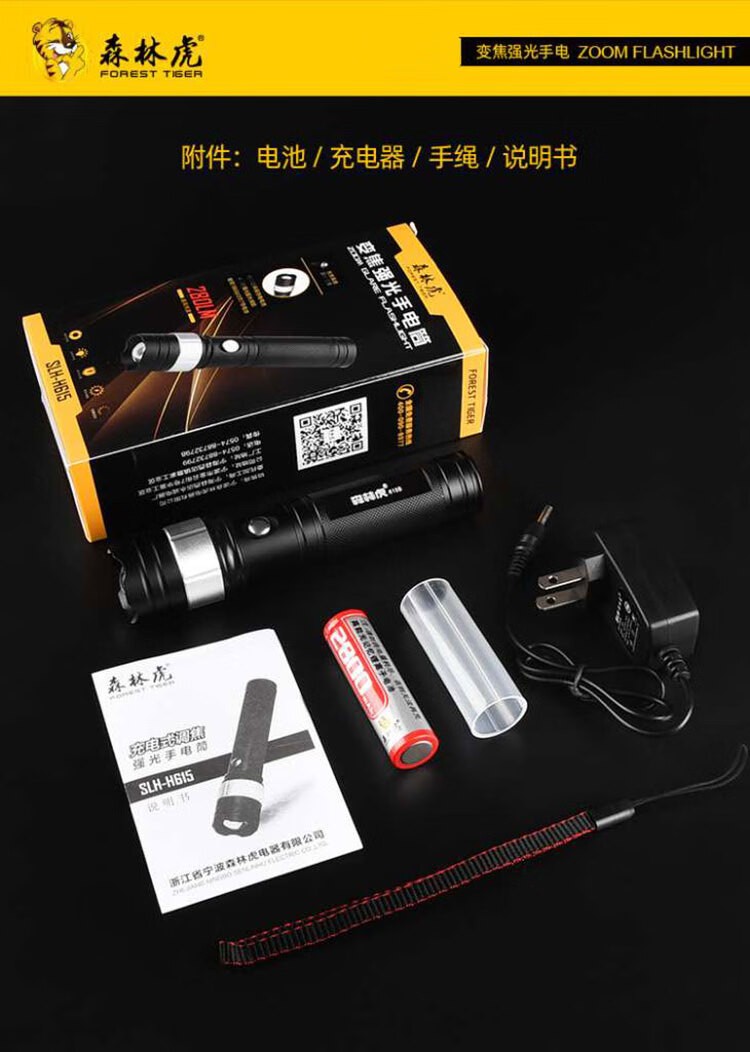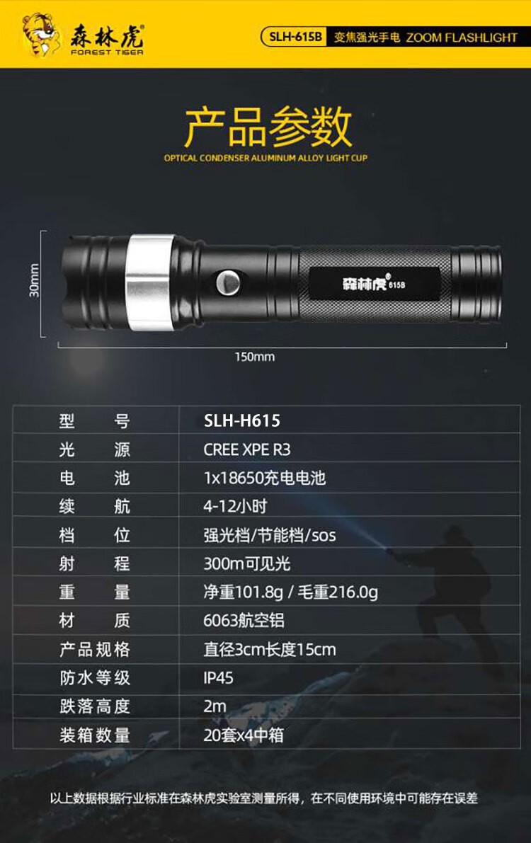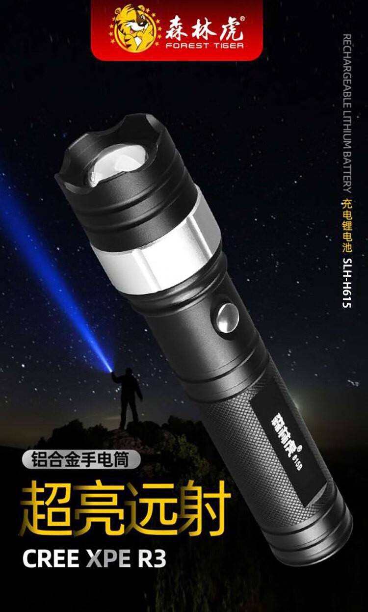 森林虎SLH-H615B旋转调焦距强光电筒153MM