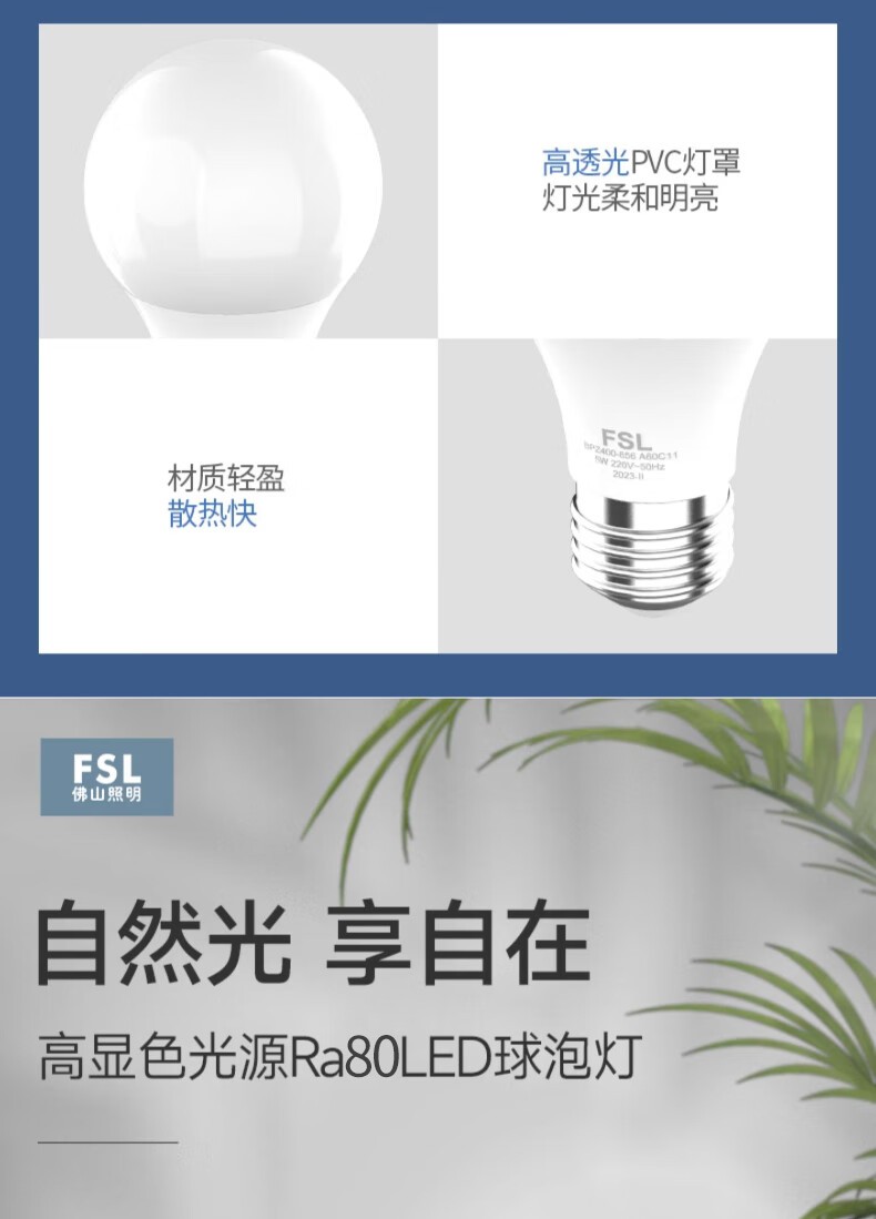 佛山照明E27 LED A60灯泡6500K 10w
