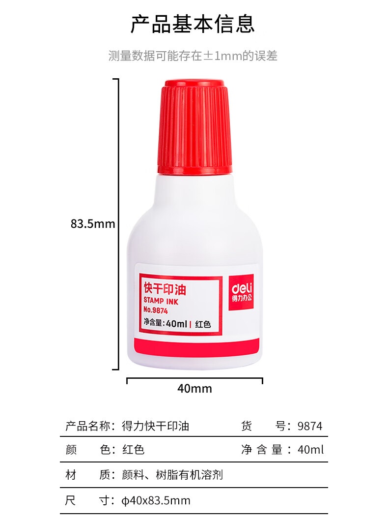 得力9874 快干印油40ml