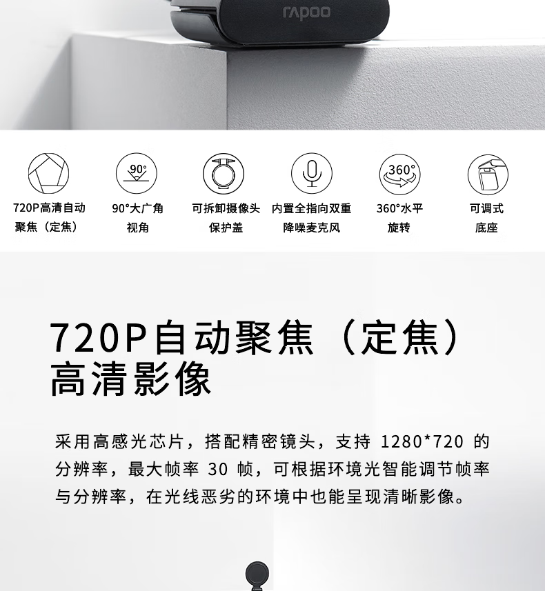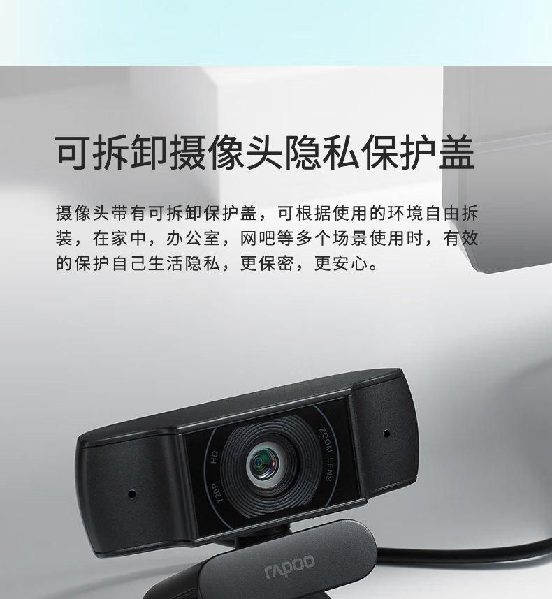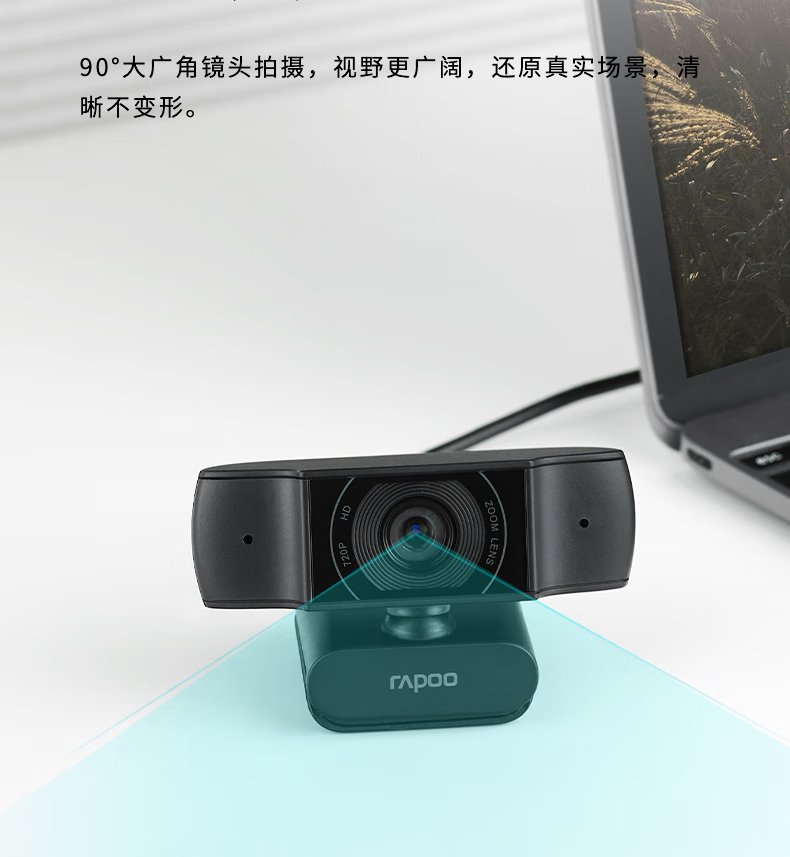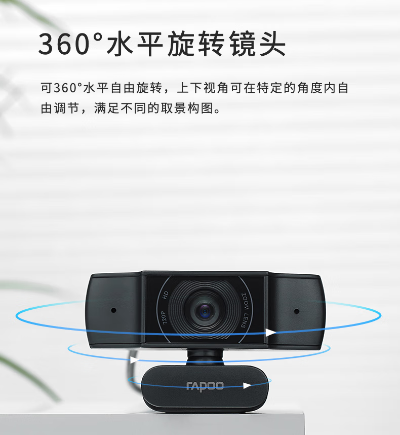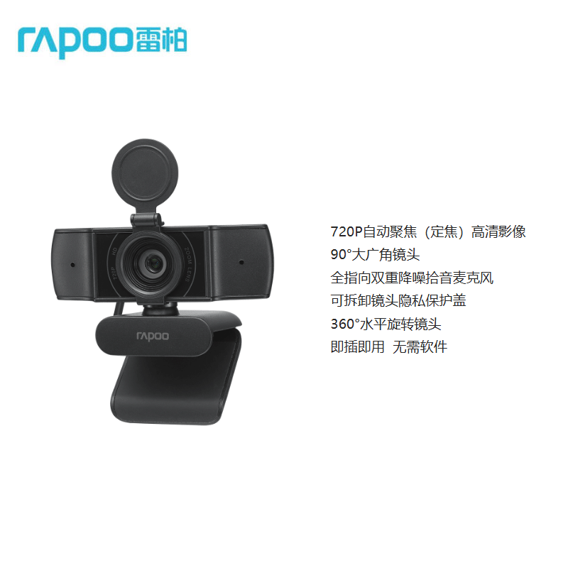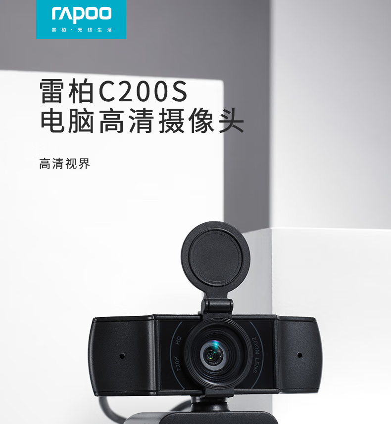 雷柏C200S全高清广角摄像头可夹式 720P