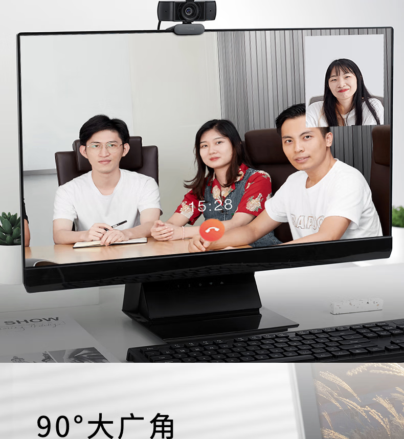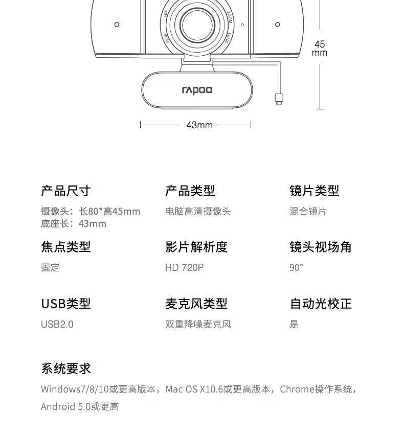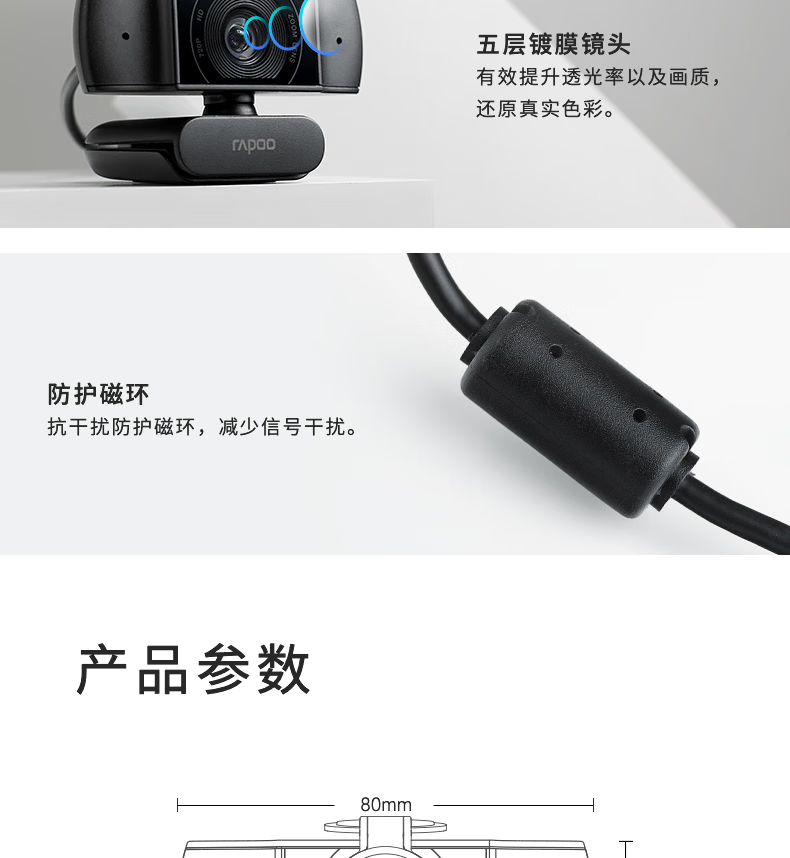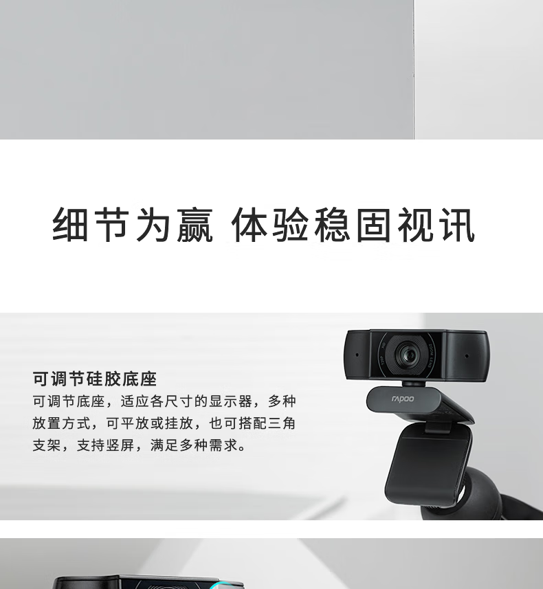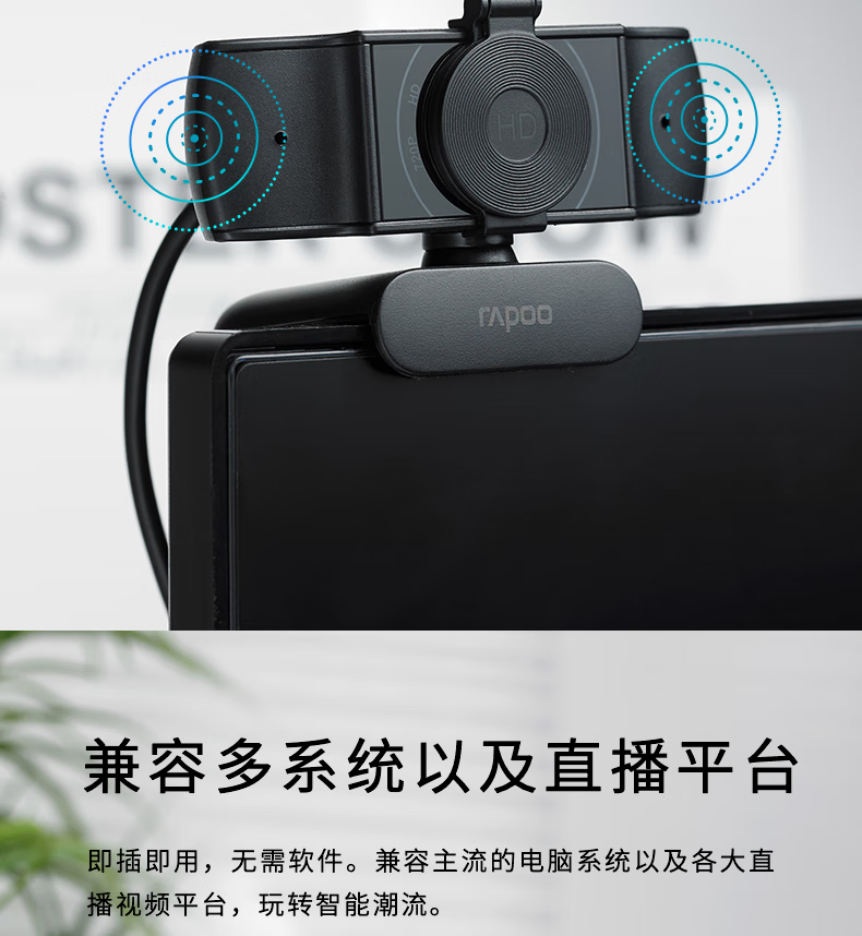 雷柏C200S全高清广角摄像头可夹式 720P