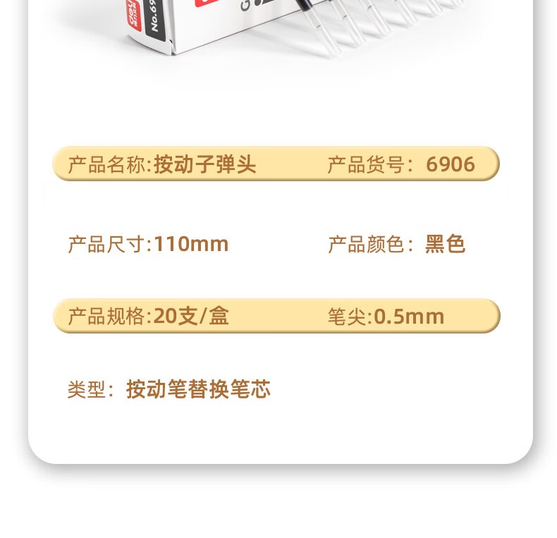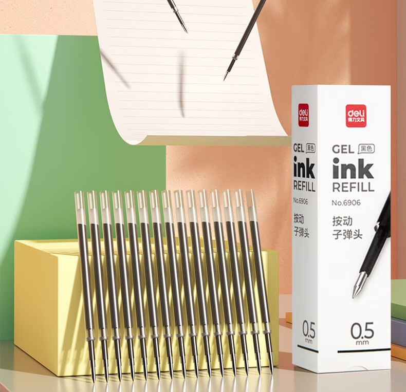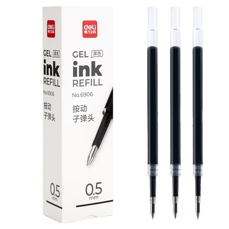 得力6906按动中性笔芯 0.5mm(黑)(适用S01)