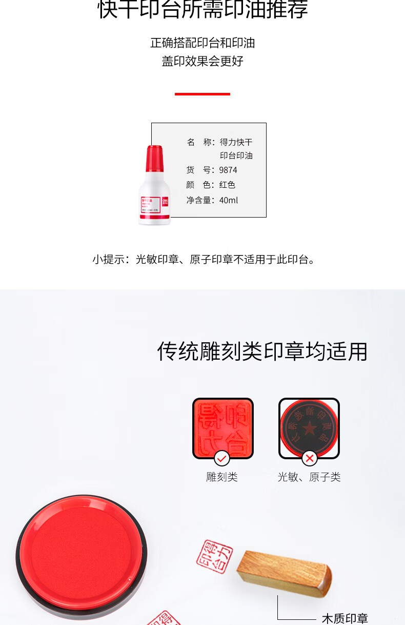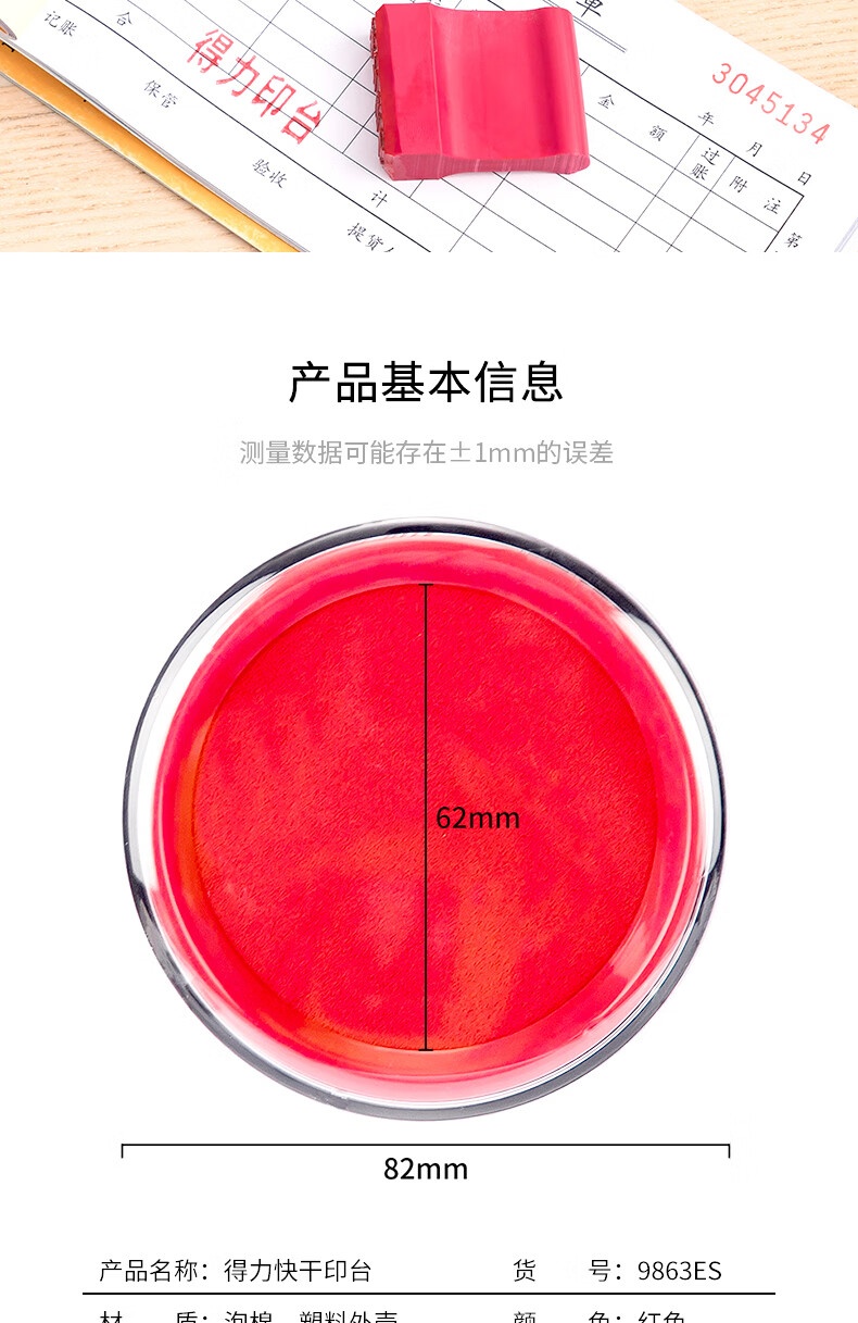 得力9863ES 快干单色印台 (红色)外径82mm 内径62mm